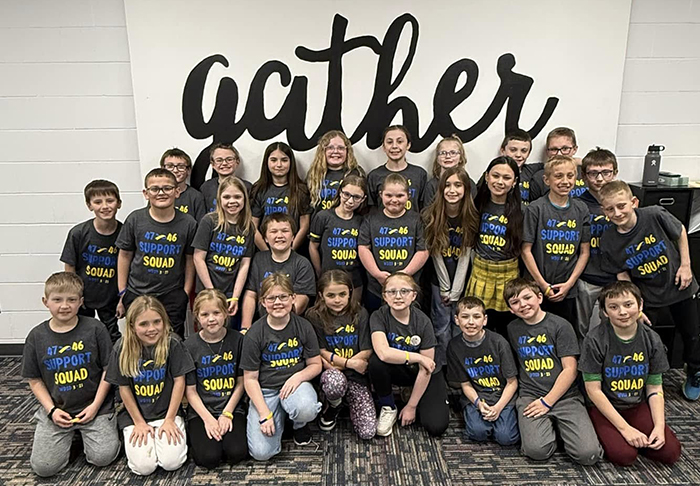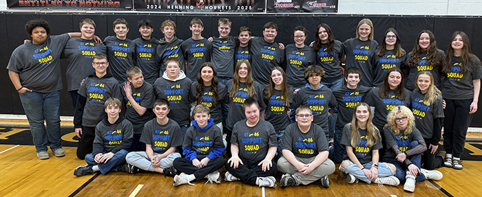 Henning eighth (above) and fourth grade students (right) wore matching shirts in honor of their classmates who Down Syndrome last Monday in celebration of World Down Syndrome Day. Down Syndrome Day is celebrated each March 21, but school was canceled due to the state basketball tournament.
