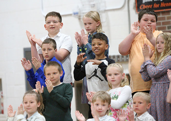 Henning Elementary students hosted their annual spring concert on Friday morning. The K-5 music students, as well as the fifth grade band, performed a wide variety of songs that featured a number of solos and small group speaking parts during the performance.