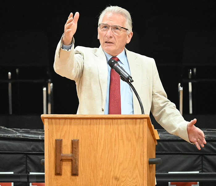 Pastor Wendell Wahlin spoke during the Henning Memorial Day program on Monday morning. Wahlin was one of several people who spoke during the program, which also included a number of musical selections. For more information about the Memorial Day programs in both Henning and Deer Creek, check out page 3.