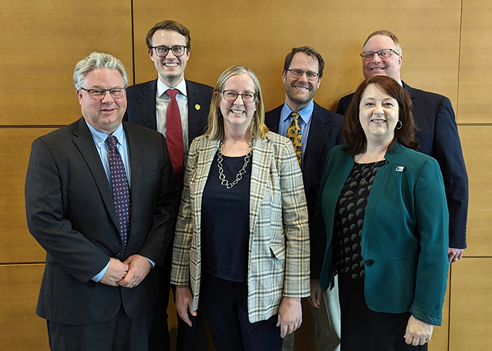 Senator Jordan Rasmusson (R-Fergus Falls) joins stakeholders who testified in favor of his legislation to reduce barriers and provide an alternative pathway to CPA licensure. Front row, L-R: Bob Cedergren, chair of the MNCPA Board of Directors; Linda Wedul, president and CEO of the MNCPA; and Julie Blaha, state auditor. Back row: Sen. Rasmusson; Eric Grube, professor of accounting at Concordia University-St. Paul; and Pat Plamann, managing partner at Schlenner Wenner & Co. based in St. Cloud.