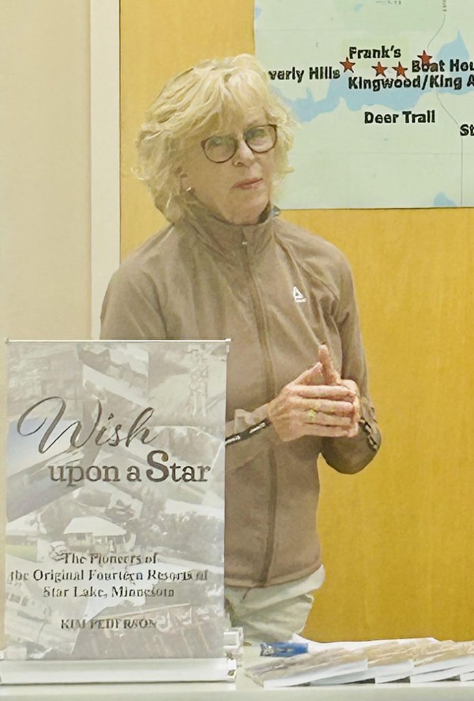 Kim Pederson is the author of “Wish upon a Star” which tells the story of the pioneers who established the original 14 resorts at Star Lake. She spoke at the Pelican Rapids Public Library just after the book was published.
