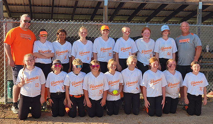 The Henning 14u team finished their season with a record of 1-9-1. The team fell to third seeded Park Rapids 6-5 in the opening round of their end of season tournament. The team had a tough schedule, but were in just about every game throughout the season. Team members included: front row: Rylee Weller, Savannah Springer, Klare Thalmann and Harper Umland. Middle row: Jazmin Saari, Shadley Bunkowski, Ivy Witt, Harper Umland and Kendall Koenen. Back row: Chad Koenen, Clara Peterson, Emily Hanson, Ava Rousu, Olivia Deyounge, Jacobi Saari and Steve Witt. Not pictured: Brittany Kline and Abi Jones.