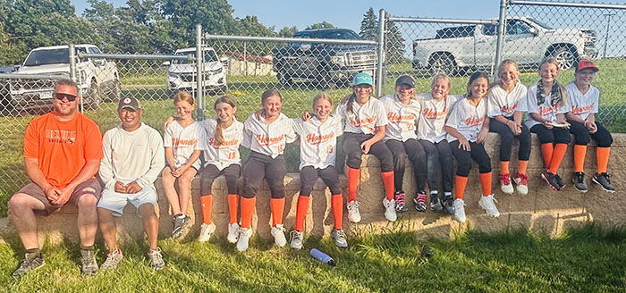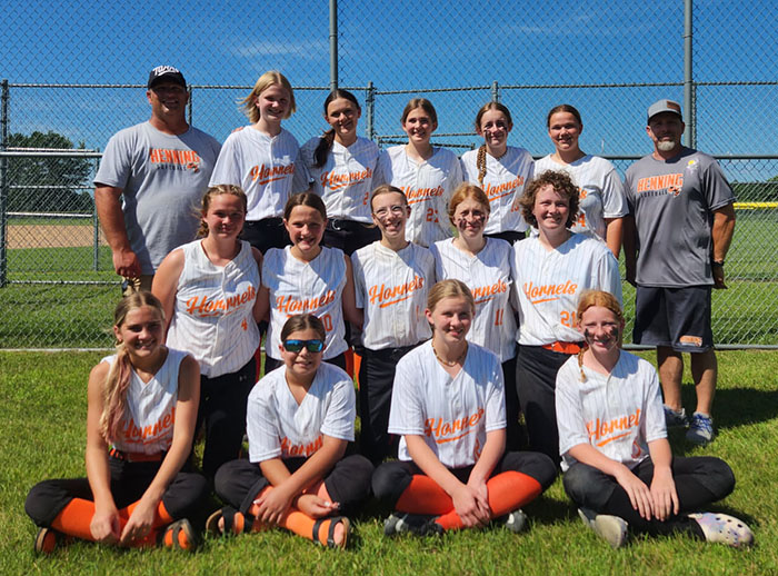 The Henning 12u team finished their season with a record of 5-7-1. They defeated Sebeka 10-5 in extra innings in their end of season tournament, before falling to top seed Wadena-Deer Creek and Menahga in the tournament. Team members included: front row: Fiona Eckel, Shelby Loock, Jayden Ross, Gracie Springer, Koli Torgerson, Lauren Anderson, Mila Umland, Johanna Saari and Annabelle Jacobs. Back row: Jason Torgerson, Emmy Spires, Kaliyah Green, Korie Koenen, Charlier Dehmer, Kami Dittberner, Makayla Menze, Shiela Tierney and Chad Koenen.