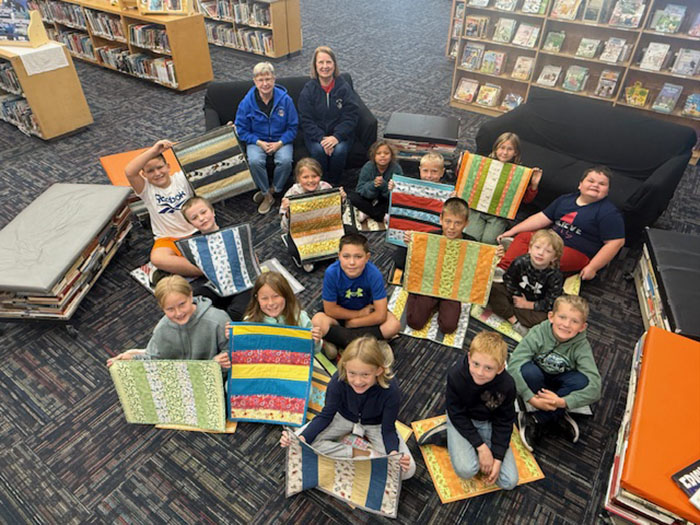The Henning Public School Library has a new touch of warmth and comfort thanks to the generous hands of the Quiltlanders Quilting Group. The group recently crafted and donated 24 handmade “sitting mats” for students to use during library time—an alternative to sitting directly on the floor.