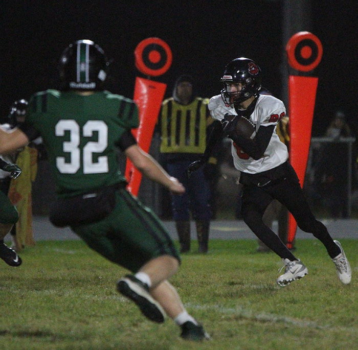 Steven Mills returns a kick off during Wednesday’s game in Frazee.