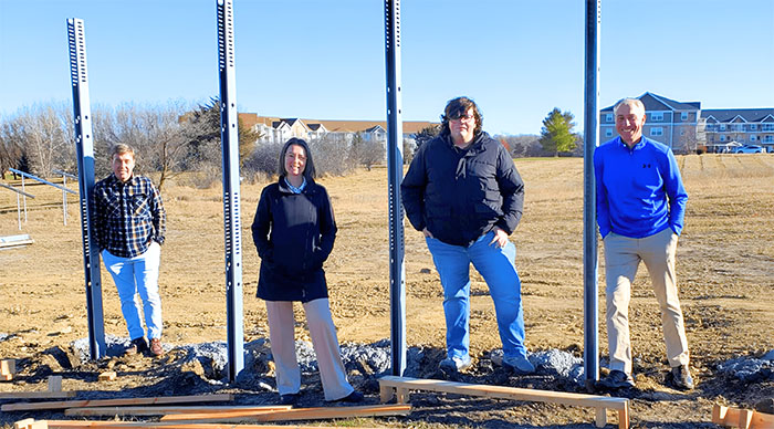 Photographed at West Central Initiative’s solar fence installation in progress, L-R: Ben Schierer, Cedar Walters, Griffin Peck, and Greg Wagner.