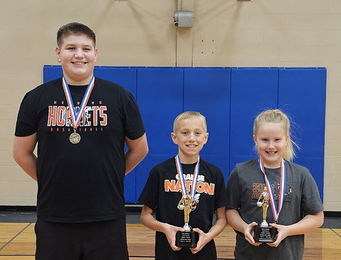 Owen Honebrink, Reegan Hoelscher and Hadley Anderson participated in the District Elks Hoop Shoot on Saturday, in Baxter. All three of these individuals represented Henning very well and brought some hardware home. Honebrink placed fourth in the 12-13-year-old boys division, Hoelscher placed second in the 10-11-year-old boys division and Anderson placed second in the 8-9-year-old girls division.