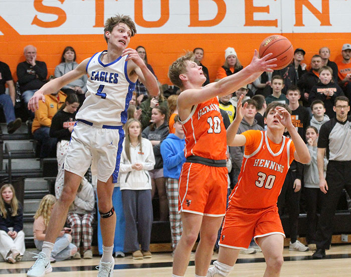 In a match up between the top two teams in the Park Region Conference, the Henning Hornets were able to shoot 50 percent from the floor and a perfect 9-9 from the free throw line and they upended the New York Mills Eagles 80-61 on Tuesday night. The Eagles came into the game with a record of 9-1 with their lone loss being by just two points to Pillager earlier in the season.