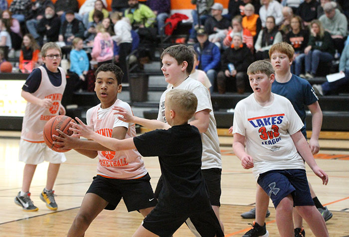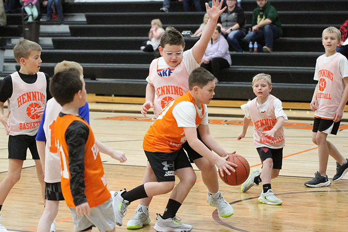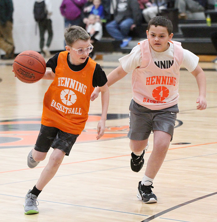 Members of the Henning elementary basketball program took to the court on Friday night as part of the youth night activities in Henning. Youth basketball players in grades K-6 played during halftime of the c-squad, JV and varsity basketball games with many of the athletes sticking around to get an autograph from a Henning senior high basketball player following the conclusion of the varsity basketball game.